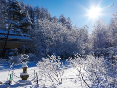 1日目: 長野県・茅野駅集合 ⇒ 駅構内の「まちライブラリー@My Book Station茅野駅」を訪問 ⇒ 「バラクライングリッシュガーデン」でランチ、白銀に輝くガーデンや園内ショップを自由散策 ⇒ 「蓼科親湯温泉」にチェックイン後、自由時間。館内ライブラリー「みすず Lounge&Bar」「岩波回廊」やお部屋で読書をお楽しみください